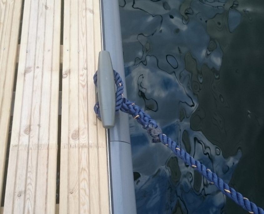 Her ser man hvordan det skal fortøyes på de nye kryssholtene. Gjør vi det slik vil vi unngå at de knekker slik som en del har opplevd. Vi vil skifte en del knekte kryssholter på lørdag fk. 5.11.16